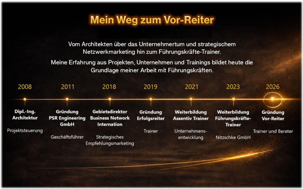 Ich bin kein Motivationsredner, sondern ein Praktiker. Ich bringe meine eigene Erfahrung aus Projekten ein, denn ich kenne den Druck und verstehe die Dynamik auf der Baustelle und im Büro. Und ich arbeite mit klaren, bewährten Methoden aus der Führungsentwicklung.